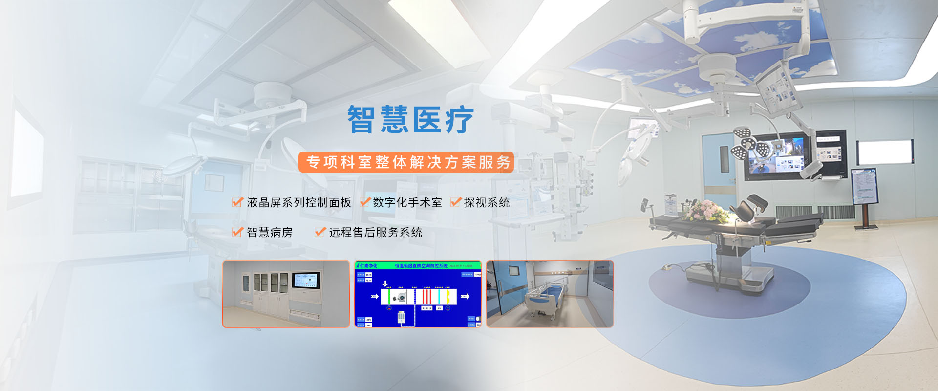 层流手术室介入手术室 数字一体化手术室 产房/一体化产房 ICU/血液透析中心 检验科/输血科/病理科 实验室/静脉配置中心 放射科/中心供氧 污水处理/弱电智能化 等项目的设计、制作、安装、调试、设备配套、售后等服务